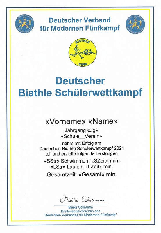 Beim Biathle-Schülerwettkampf sind vom Teilnehmenden eine Laufstrecke und eine Schwimmstrecke zu absolvieren, wobei die Streckenlänge vom Alter abhängt. Ziel des Wettbewerbs ist es, möglichst vielen Kindern und Jugendlichen ein sportliches Erfolgserlebnis zu vermitteln. Daher sind die Teilnahmebedingungen besonders einfach gehalten.